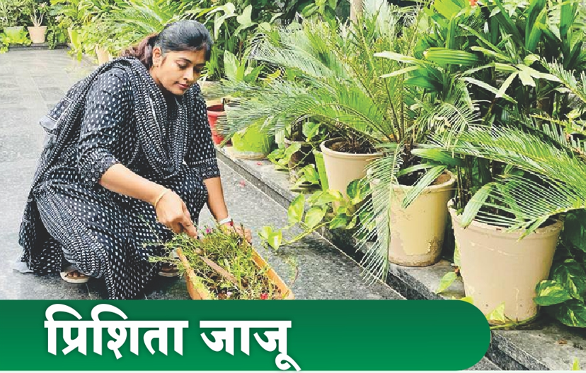 भीलवाड़ा कुमुद विहार निवासी 37 वर्षीय प्रिशिता जाजू ने अपने घर में कच्ची जगह नहीं होने के बावजूद लगभग 1125 गमलों में 110 प्रजातियों के फूलदार, फलदार, औषधीय व बेल वाले चंपा, पारिजात, एक्जोरा, फोनीसपाम, एरिकापाम, स्नेक, मनीप्लांट, साइकस, फाइकस, क्रोटन, सिंगोनिया, बटनबेल, जूही, अजवाइन, स्पाइडर लीली, एडेनियम, पिंजरी, एलोवेरा, फिस्टल पाम, गुड़हल, चांदनी, नींबू, सुपारीपाम, बॉटलपाम, टोपी कृष्णा, मीठा नीम, पेंडनास, रैपिक्स पाम, अशोक, मोलश्री, मोगनी, तुलसी, नीम, टपोरी, प्लेटाफाम आदि पौधे लगाकर अपने घर को हरा-भरा कर प्राणवायु का केंद्र बनाते हुए अन्य महिलाओं को गमलों में पौधे लगाने के लिए प्रेरित किया है।