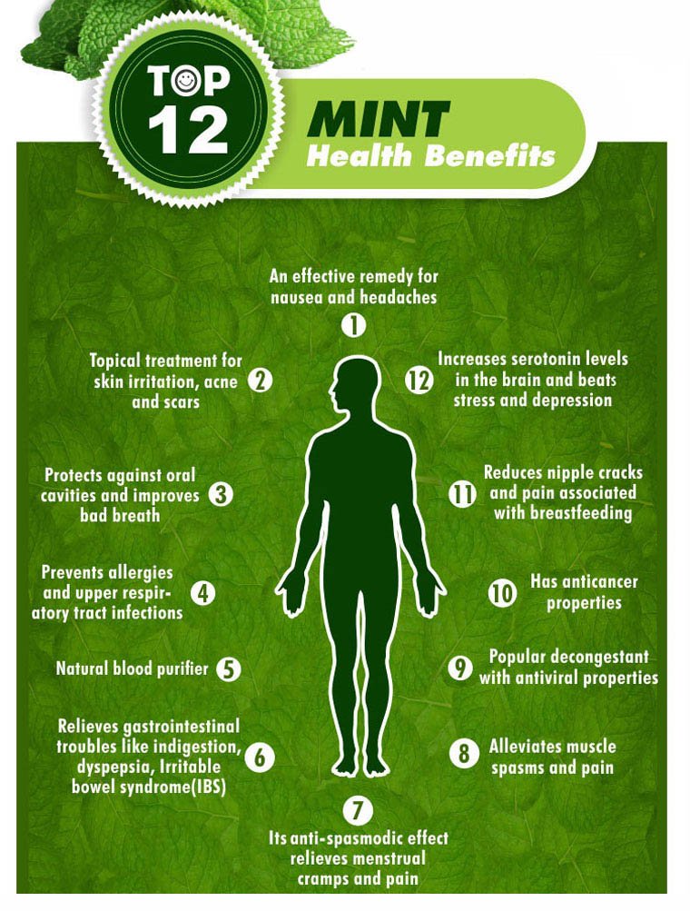 खांसी- चौथाई कप पुदीना का रस इतने ही पानी में मिलाकर रोजाना 3 बार पीने से खांसी, जुकाम, कफ-दमा व मंदाग्नि में लाभ होता है।