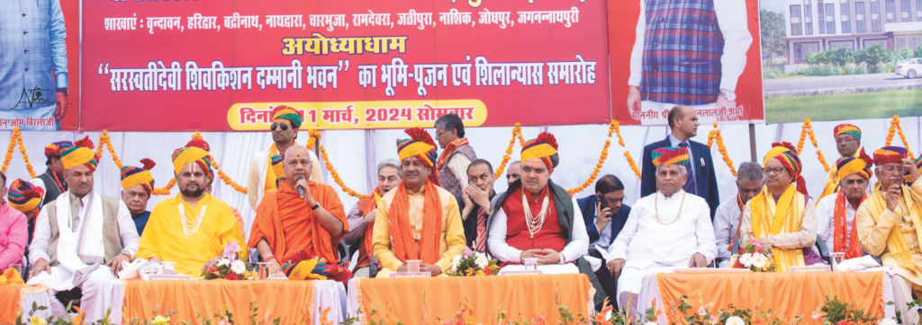 इसके अंतर्गत अयोध्याधाम में दशरथकुण्ड के निकट 80 हजार वर्गफीट में सौ करोड़ से अधिक की लागत से बनने वाले 300 कमरों एवं विशाल सभागारोंयुक्त सेवा सदन के निर्माण हेतु भूमि-पूजन एवं शिलान्यास समारोह ऐतिहासिक रूप से गत 11 मार्च को सम्पन्न हुआ। इस आयोजन में धार्मिक, राजनीतिक व सामाजिक क्षेत्र की कई हस्तियों ने उपस्थित रहकर इसकी गरिमा बढ़ाई।
