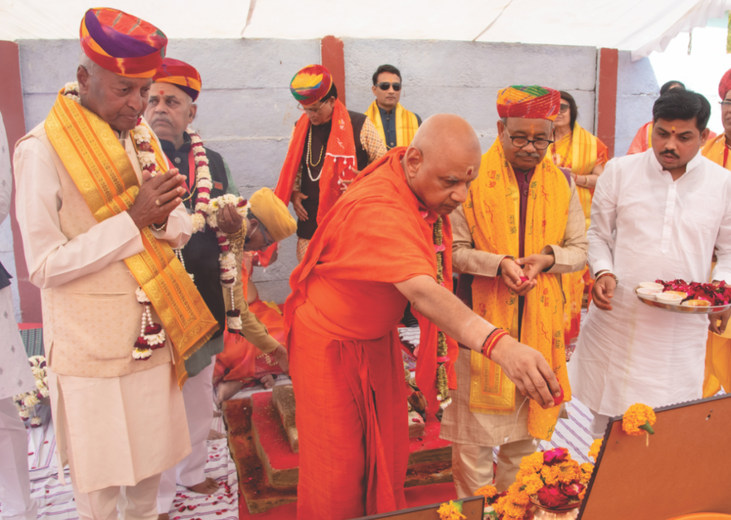कार्यक्रम के आरम्भ में आचार्य श्री महेशगुरुजी नन्दे ने वैदिक मंत्रोच्चार के साथ देवी-देवताओं का मंडल बनाकर आह्वान किया। प्रकाण्ड पण्डितों द्वारा भूमि पूजन करवाया गया तथा स्वामी श्री गोविन्ददेवगिरीजी महाराज, ओम बिरला, मुख्यमंत्री राजस्थान शासन भजनलाल शर्मा, राधाकिशन दम्मानी, आनन्द राठी, संस्था के अध्यक्ष रामकुमार भूतड़ा, पदाधिकारियों एवं कार्यकारिणी सदस्यों द्वारा शिलान्यास किया गया। भूमिपूजन कार्यक्रम के यजमान रामरतन भूतड़ा (सूरत) थे। कार्यक्रम का संचालन विजय शंकर मूंदड़ा ने किया।