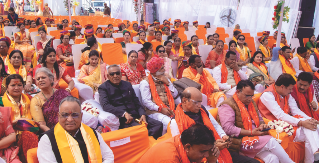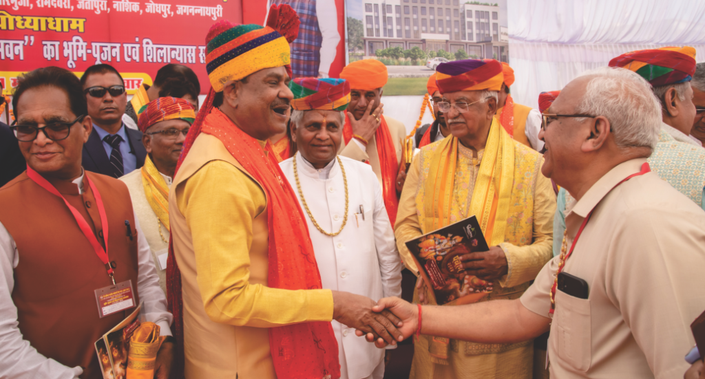 सेवा-सदन के इतिहास में ऐसा प्रथम अवसर था जब किसी आयोजन में पूरी सरकार समाज के मंच पर उपस्थित रही। वैदिक मंत्रोच्चार के बीच समारोह आयोजित हुआ। कार्यक्रम में मुख्यरूप से श्रीराम जन्मभूमि तीर्थ क्षेत्र न्यास अयोध्या के कोषाध्यक्ष राष्ट्रीय संत स्वामी श्री गोविन्ददेवगिरीजी महाराज, जगद्गुरु रामानुज सम्प्रदाय अयोध्या के श्री श्रीधराचार्यजी महाराज, वेदांती आश्रम अयोध्या के अधिकारी श्री राजकुमारदासजी महाराज, तखतगढ़ मठ (राजस्थान) के युवाचार्य श्री अभयदासजी महाराज, लोकसभा अध्यक्ष ओम बिरला, राजस्थान के मुख्यमंत्री भजनलाल शर्मा, राजस्थान विधानसभा अध्यक्ष वासुदेव देवनानी, उत्तरप्रदेश के विधानसभा अध्यक्ष सतीश महाना, उत्तरप्रदेश के कृषिमंत्री सूर्यप्रताप शाही, भूमि दानदाता डी-मार्ट के संस्थापक राधाकिशन दम्मानी, कार्यक्रम के स्वागताध्यक्ष आनन्द राठी, राजस्थान सरकार के केबिनेट मंत्री एवं राज्य मंत्रीगण, बड़ी संख्या में विधायकगण, भारतीय जनता पार्टी के अनेक पदाधिकारीगण, मुख्य सचिव सहित वरिष्ठ प्रशासनिक अधिकारीगण, पूज्य संतगण एवं देशभर के कौने-कौने से पधारे भामाशाहों की प्रमुख उपस्थिति रही।