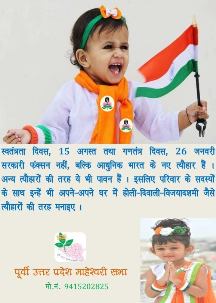 राष्ट्र में रहने वालों के धर्म, भाषा, खान-पान, पहनावा अलग-अलग हो सकते हैं मगर राष्ट्र तो सबका एक ही है इसलिए राष्ट्रीय आस्था के किसी साझा बिंदु की आवश्यकता पहले भी थी, आज भी है, जिसका सम्मान प्रत्येक देशवासी करे। देश में साझा संस्कृति का कोई राष्ट्रीय त्योहार होना चाहिए। वाराणसी निवासी वरिष्ठ समाजसेवी श्रीराम माहेश्वरी ने सभी समाजबंधुओं से अपील की है कि स्वतंत्रता-दिवस और गणतंत्र-दिवस को सभी बंधु अपने घर में अन्य त्योहारों की भांति मनाएँ। त्योहारों के माध्यम से राष्ट्र से जुड़ने पर भी विचार होना चाहिए।