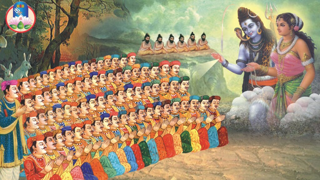 इन उमरावों ने पुनः जीवन पाकर तत्काल तलवार आदि शस्त्रों का त्यागकर तराजू को ग्रहण किया एवं माहेश्वरी समाज की स्थापना की। जिस समय भगवान शिव ने उमरावों को पुनः जीवन दिया, उस वक्त उन्हें भूख लगी। भोजन के लिए अन्य वस्तु वहां उपलब्ध न होने से प्रभु के आदेश पर वहां उपलब्ध बालूरेती के पिण्ड बनाये गए एवं भगवान शिव ने मंत्र द्वारा उन रेत के पिण्ड को ‘‘सत्तु’’ के पिंडों में परिवर्तित कर दिया।