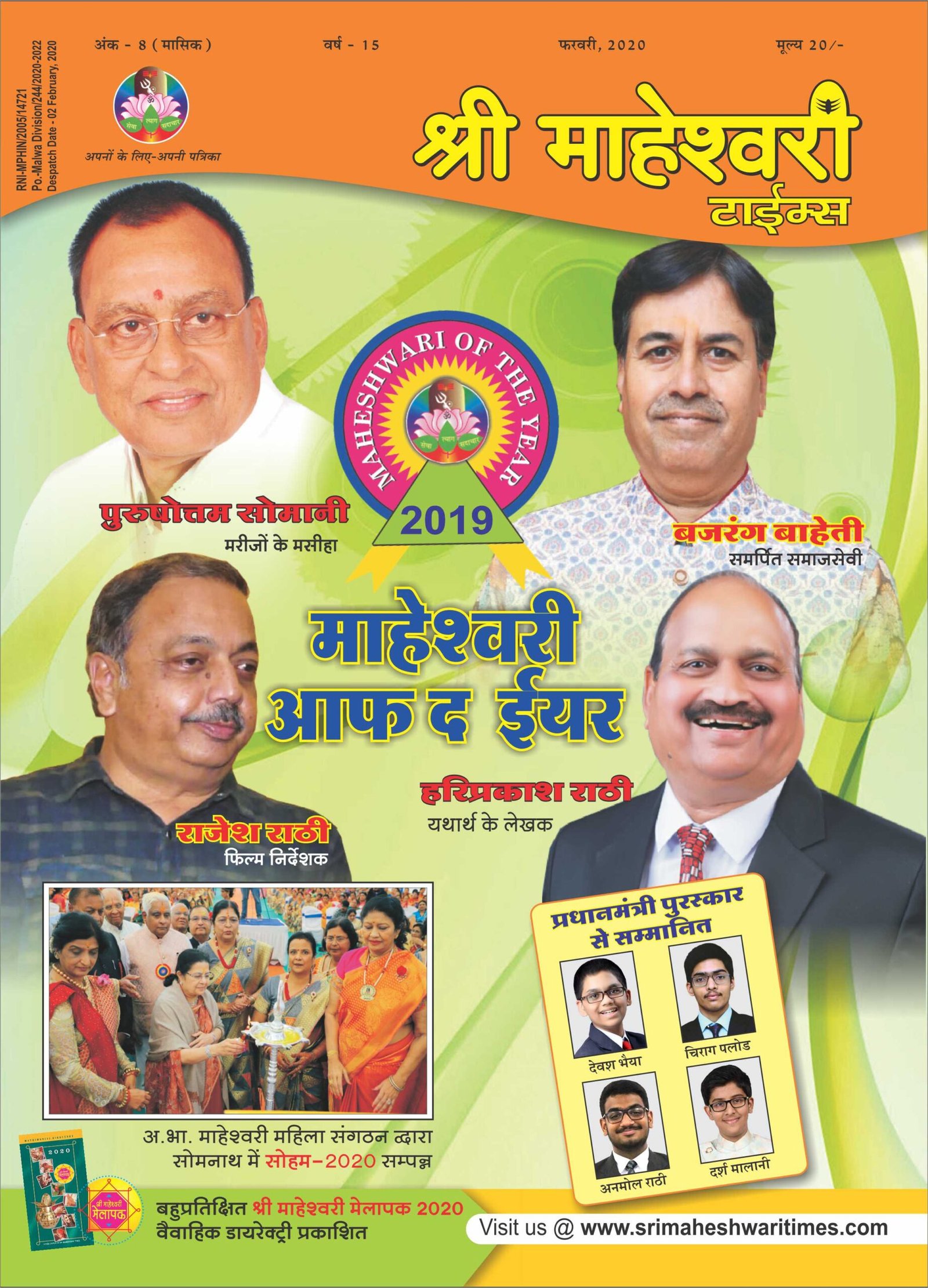 श्री माहेश्वरी टाईम्स का फरवरी अंक ‘‘माहेश्वरी ऑफ द ईयर 2019’’ अवार्ड के साथ लगभग पूर्णत: प्रतिभाओं को ही समर्पित हो गया। इसके अंतर्गत समाज की चार विभूतियों को विभिन्न क्षेत्रों में माहेश्वरी ऑफ द ईयर अवार्ड से सम्मानित किया गया।