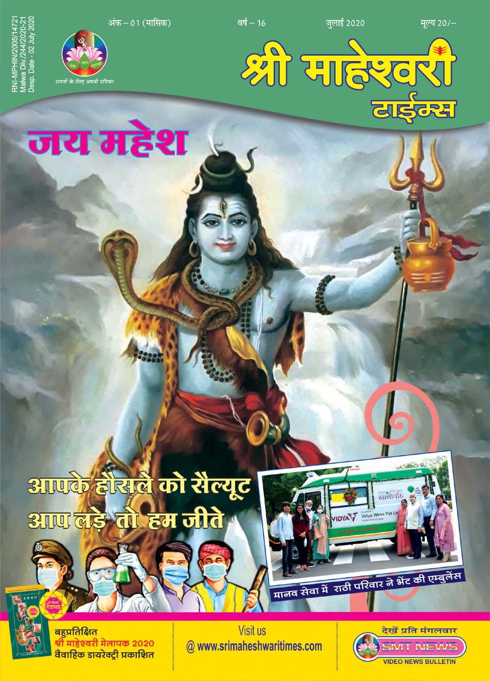 लॉकडाऊन में राहत के बाद यह अंक पुन: हार्डकॉपी में प्रकाशित हुआ। यह महेश नवमी के समाचारों को समर्पित तो था, ही साथ ही इसने ‘‘आप लड़े तो हम जीते’’ के उद्बोधन द्वारा समाज के उन कोरोना योद्धाओं के योगदानों को नमन भी किया जिन्होंने इस महामारी के बीच जीवन की परवाह न करते हुए तन-मन-धन से मानवता की सेवा की।