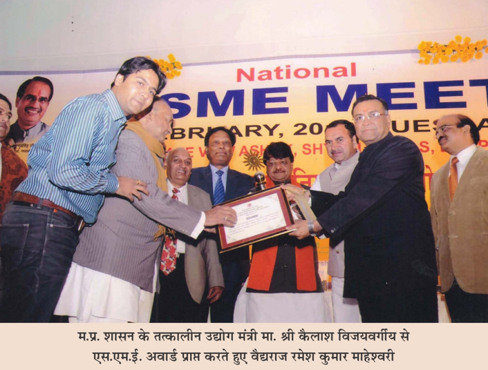 इन योगदानों के कारण ही वैद्यराज श्री माहेश्वरी म.प्र. शासन के उद्योग विभाग द्वारा राज्य स्तरीय पुरस्कार, अखिल भारतीय आयुर्वेद महासम्मेलन द्वारा ‘आयुर्वेद पीयूषपाणि’ की उपाधि व श्री अवंतिका देशी चिकित्सक मंडल, उज्जैन द्वारा ‘विशिष्ट सेवा सम्मान पत्र’ से सम्मानित हो चुके हैं। अपने इन उद्योगों द्वारा वर्तमान में आप 350 से अधिक लोगों को रोजगार भी प्रदान कर रहे हैं। सेवा भारती आदि संस्थाओं के माध्यम से सेवाओं में भागीदारी रही है।